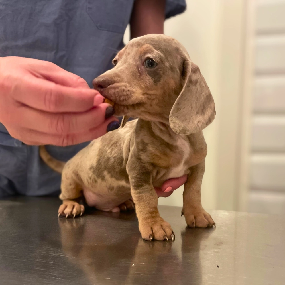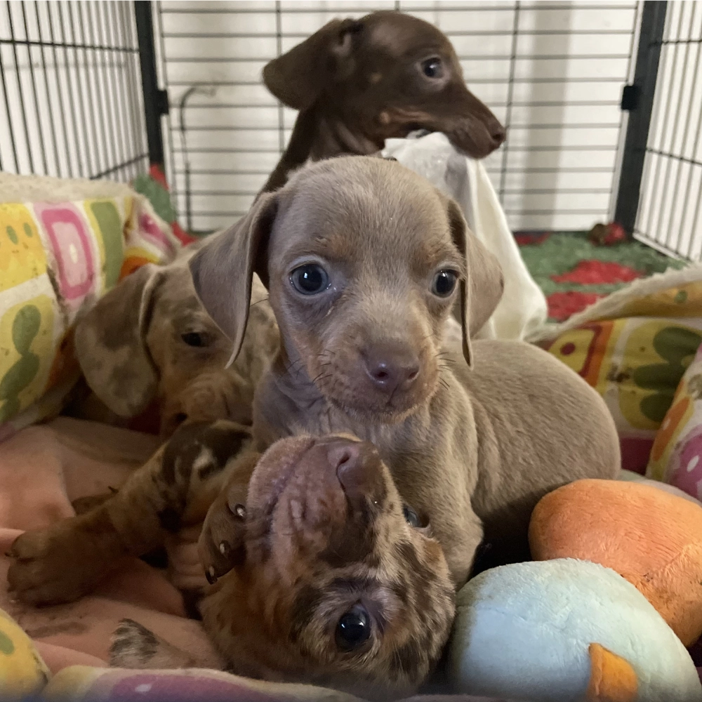 4 apró tacskókölyök került a gondozásunkba a NAV és a Jász-Nagykun-Szolnok Megyei Kormányhivatal közreműködésével. A kicsiket kutyacsempészek Olaszországba akarták szállítani és eladni, de szerencsére még időben megállították őket.